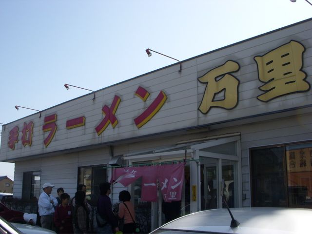 余裕で駐車できることがわかって、とりあえず反射的に車を駐車場に入れた。家族に了解をえて、ようやく来たかった万里の暖簾をくぐった。