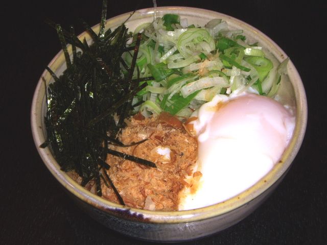 温玉丼は、ネギ、刻み海苔とそれに、かつおぶしのハーモニーでもって、けっこうおいしいし、から揚げは、揚げたてのジューシーさが生きてる。