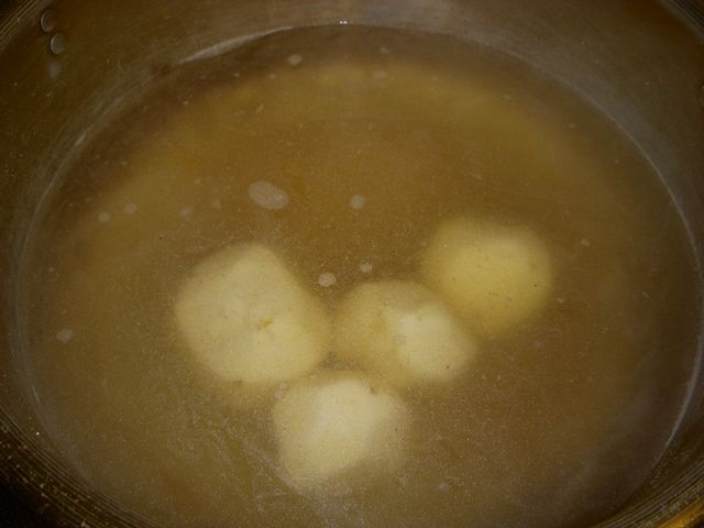 大事な事は、じゃがいもを投入したら、決して沸騰させてはいけない。60度〜80度くらいの温度を維持したまま、約20分ぐらいゆっくりと煮ること。