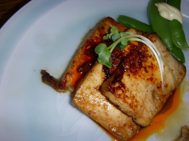 豆腐は、フライパンで焼き、焦げ目をつける。