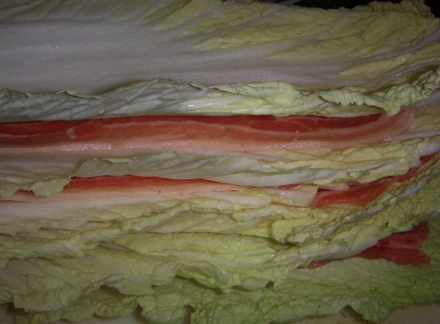 4、白菜を豚バラを交互に4〜5段重ねていく