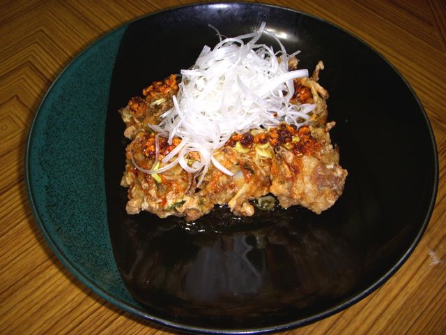 例の辛くない唐辛子と、ごま油と酢と醤油、ネギで、油淋鶏(ユーリンチー)風にしてみた。