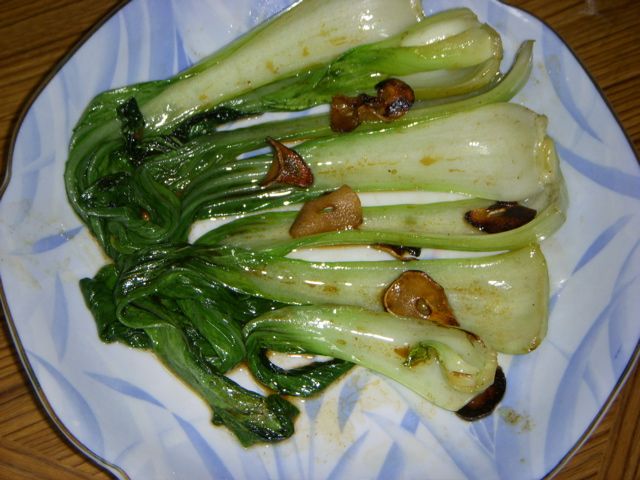 多めの油でニンニクのスライスを炒めそこへチンゲンサイを入れて焼くだけ。