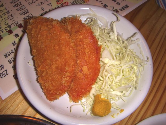 このハムカツは薄切りを重ねて作ってるミルフィーユハムカツ。最高に美味い!