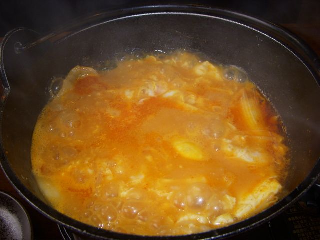 俺は豚キムチ豆腐チゲを注文。作るのに時間がかかるので注意。