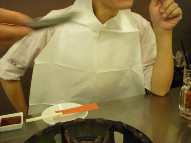 ほどなくし、紙エプロンをかけさせられる。
