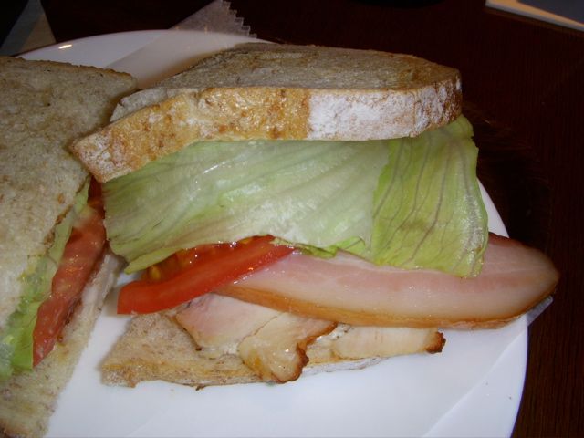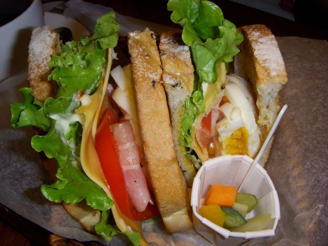 それで、俺は厚切りベーコンのクラブハウスサンド、連れはBLTwith チーズエッグを頼んでた。