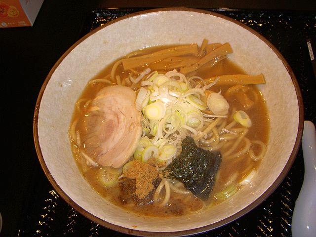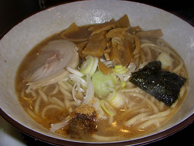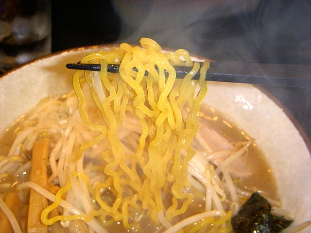 麺は、やや細めんのちぢれ麺で、スープとのからみはよいが、味わいに若干かけると思う。