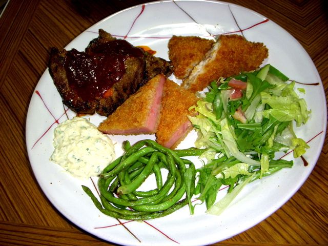 味付けは、ベーコンエッグを塩コショウして、軽くマヨネーズを間に挟みながら、最後に、にんにくオイルとサウザンドレッシングを少量あわせて塗った。