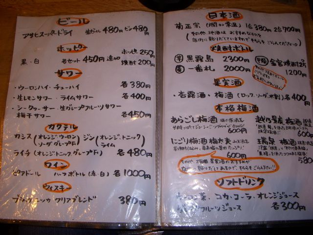 マルチョー(千葉県柏市)という焼き鳥中心の居酒屋に行った。2009.10.16
