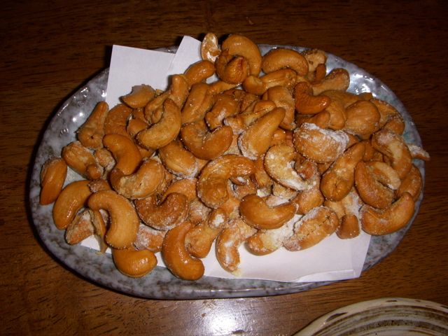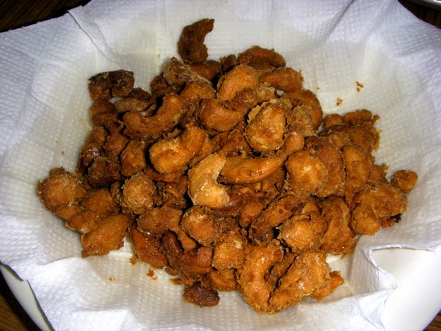 ほんとにおいしい。カシューナッツとすりおろしにんにくを和えた、片栗粉をまぶして揚げたもの。
