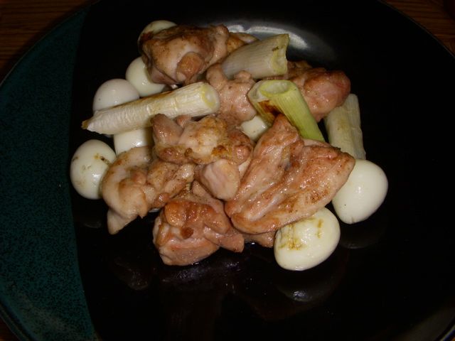 うずらたまごは、甘辛(醤油と砂糖)に味付けしたものを焼いている。