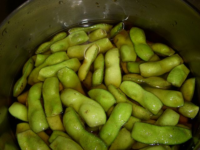 5分ほど煮て、取り出した枝豆をもう一度加えてさらに味をつけました。