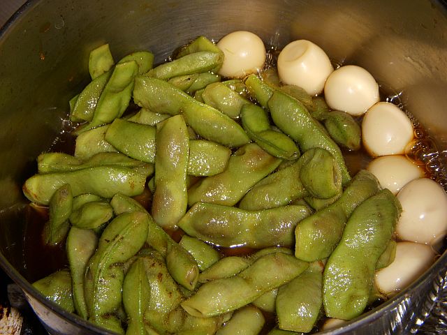今回、さめた枝豆を全部取って、うずら玉子を入れて煮てみました。