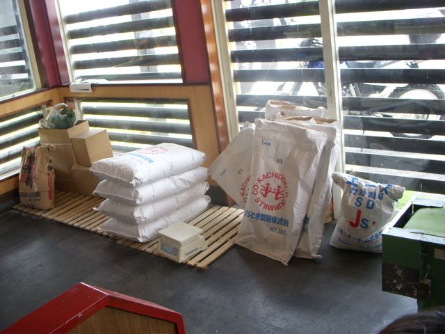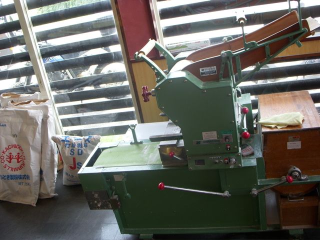 製麺機や粉がいろいろと置いてある。