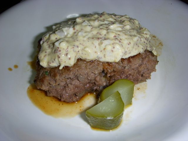 今回はタルタルに粗挽きマスタードを加えている。肉にはこれが合う。