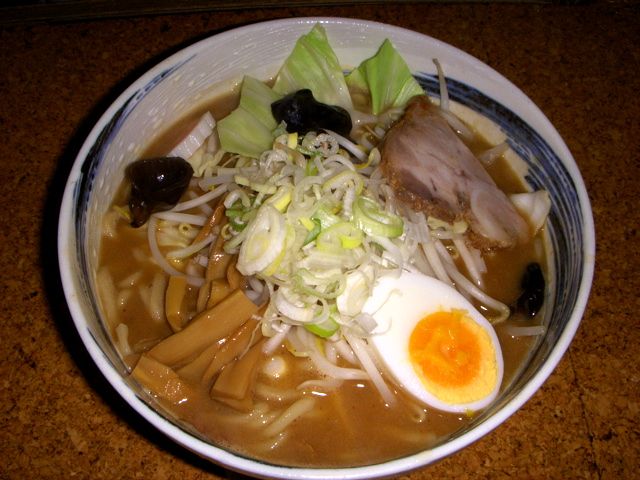 割高だが、野菜もトッピングされていて、おいしい味噌ラーメンだった。