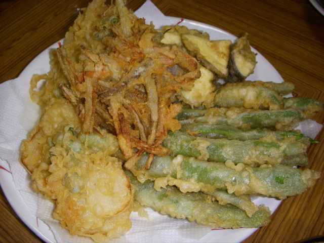 あとは、茄子、玉ねぎとそら豆の天ぷら。そして、昨日余ってたきんぴらごぼうをそのまま天ぷらにした。これが酒のつまみには最高に美味い。