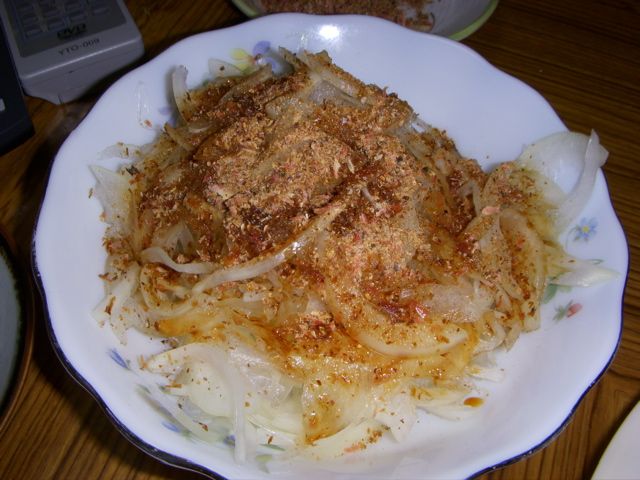 鰹節削りで削ったかつおぶしをかけて食べる。すごくおいしい。