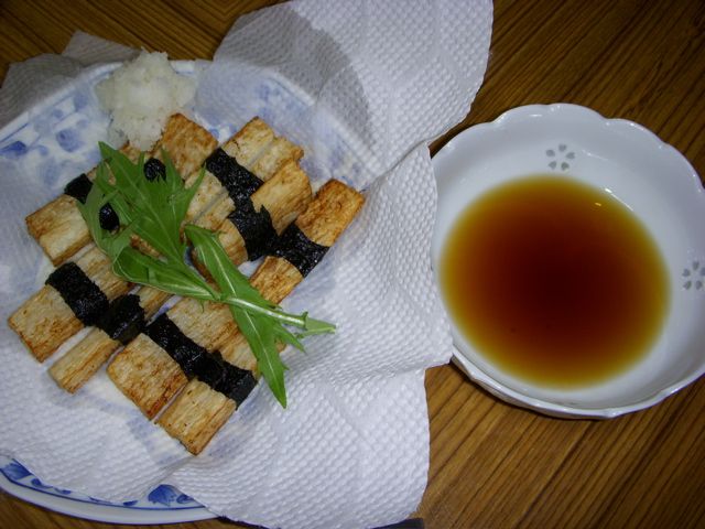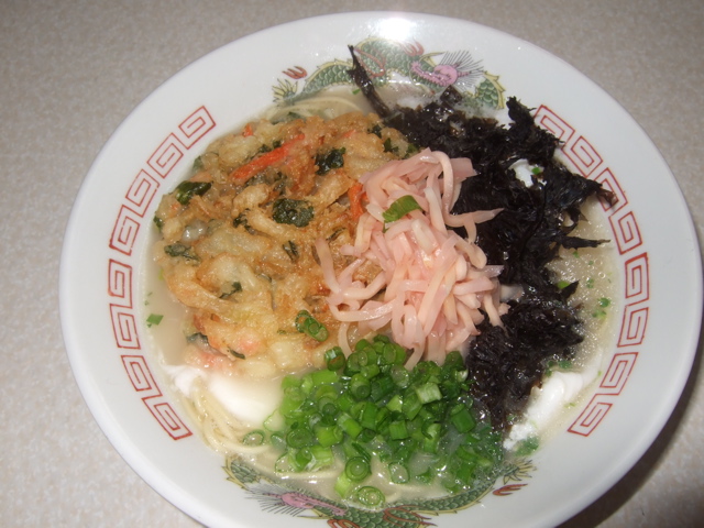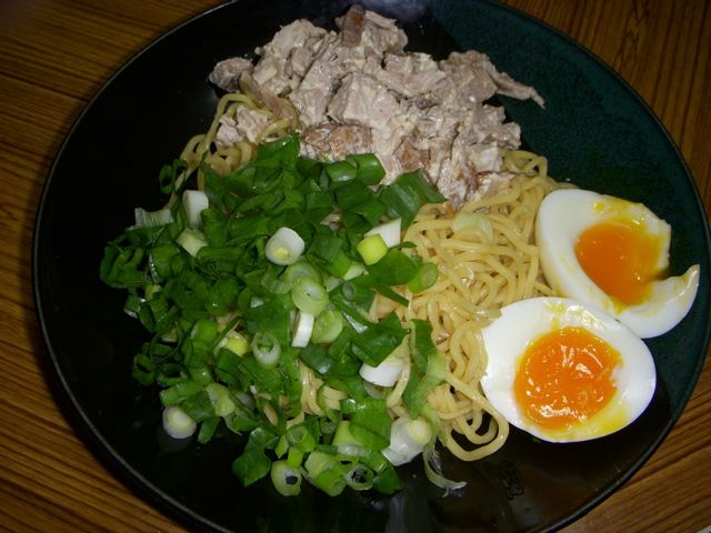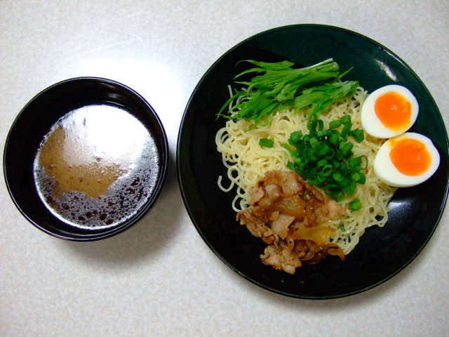 タレはめんつゆと味ポンのミックス。けっこうおいしい。
