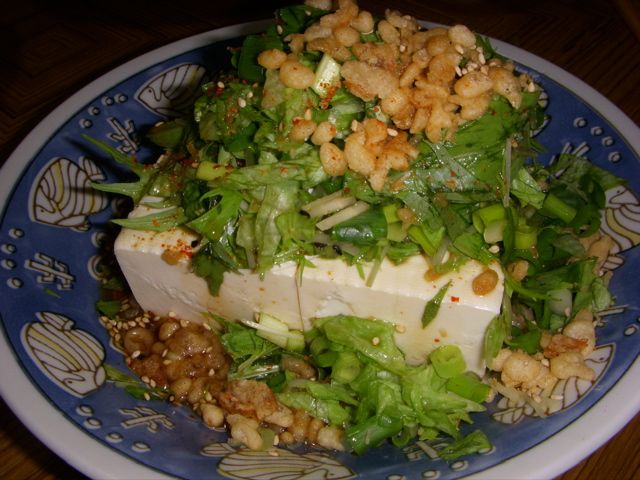 揚げ玉を使ってまた一味変わった豆腐料理と化した。
