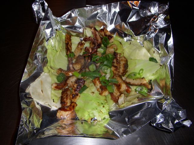 それで、最初はキャベツ。ただのキャベツに焼肉のタレがjかかっただけ…