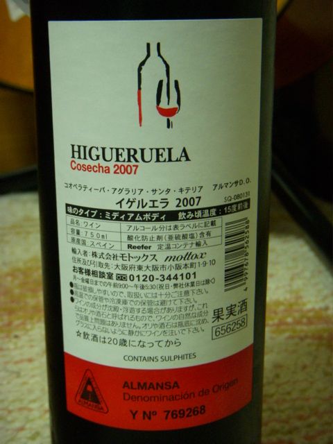 スペイン南東部アルマンサD.O.に属する生産者。フランス原産で今ではアルマンサの地ブドウと言える程になった品種ガルナッチャ・ティントレラ100%使用の果実味主体で濃い色調の赤ワイン。