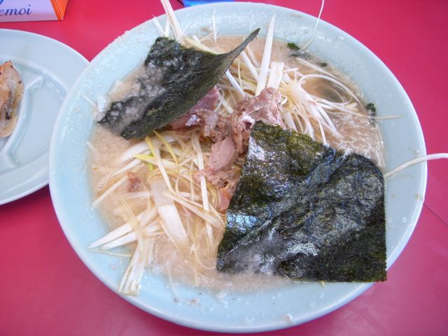 ネギラーメンは、長ネギをただ切ってそれをタレで和えたものがトッピングされる。
