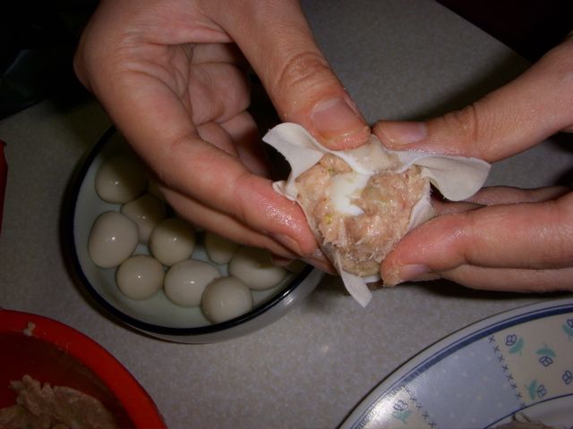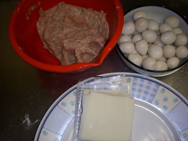 うずら卵をあんで包さらに皮で包みます。