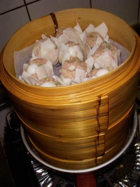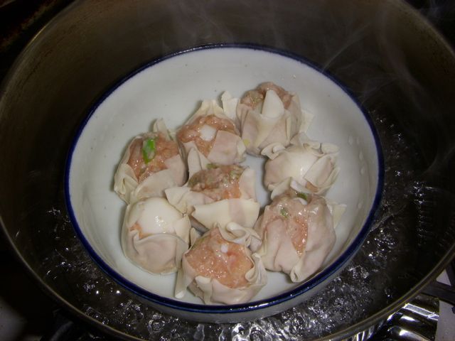 だけど、皮が34枚あって、蒸篭には24個前後しか入らないから、残りは別鍋で蒸した。