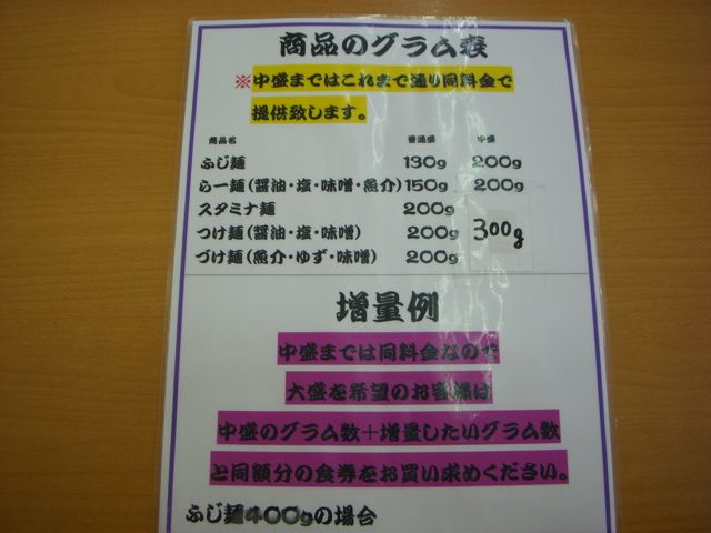 なんか変だ。ふじ麺が300gだったら食べきれない…不思議だ…