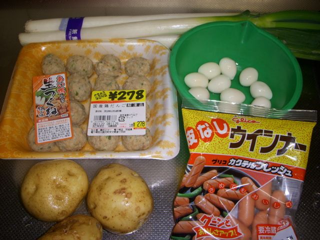 1、材料は、今回鍋用の生つくねを使った。かなりおいしい。