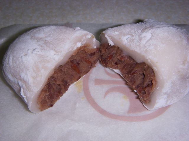 塩大福は、あんに塩が効いてて美味しい。あんも甘すぎずベストな状態。うっすらとピンクがかってるのが特徴。ごま大福もおいしい。