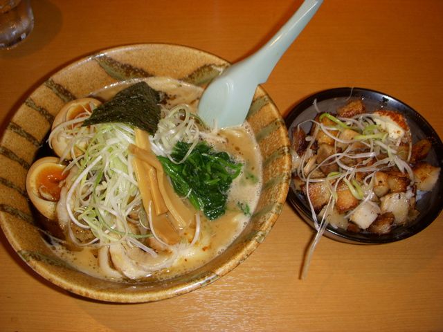 で、ラーメンは、豚骨魚介のこってりスープで、にんにく油を注文。かなりまったりしてておいしいのだが、何かバランスがおかしいと思う。忠君の時には、こんなことはなかった。もちろん青山さんの指示でもないと思う。
