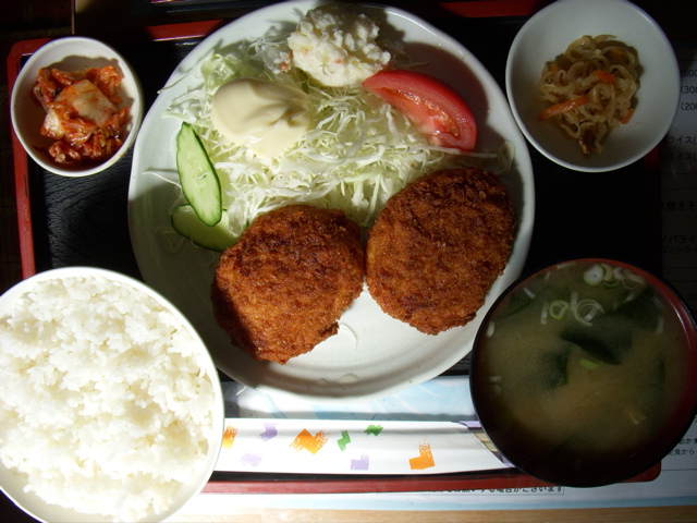 コロッケ定食到着。