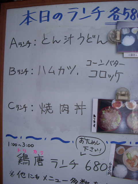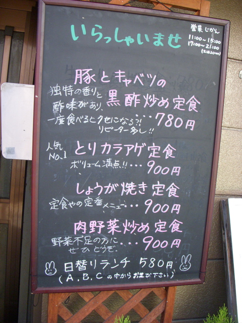 店の前にはメニューが書かれた黒板と、定番メニューを書いたものが立てかけてある。なんか雑然とした感じがする。
