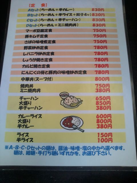 そんでメニューはというと、普通の中華屋メニューで、しかもちょっと高い。