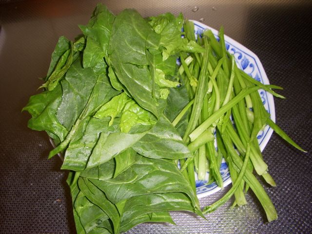 ソテーするのは葉の部分だけ。軸は他の料理に利用する。