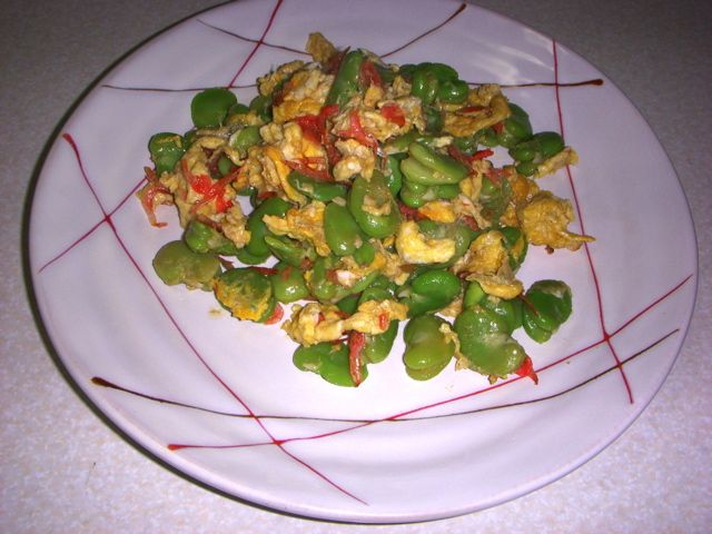 焦がしバターで手早くあわせて、葉があと少しで火が通る感じの所であげる。