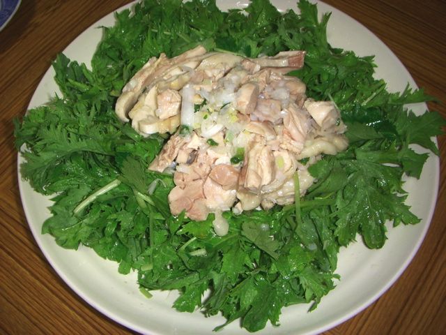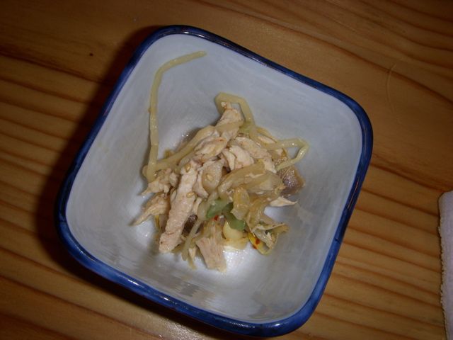 鳥肉の和え物。奥の座席には、お通しが席料となる。