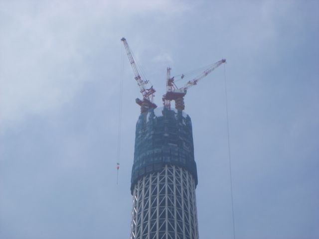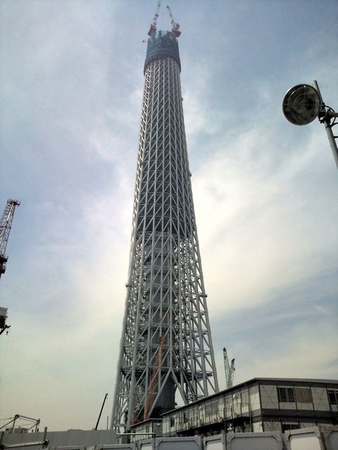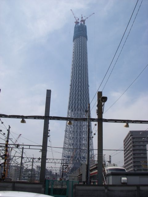 ようやく合流し、東武伊勢崎戦の曳舟駅で下車すると、もうかなり大きいスカイツリーが出来てた。