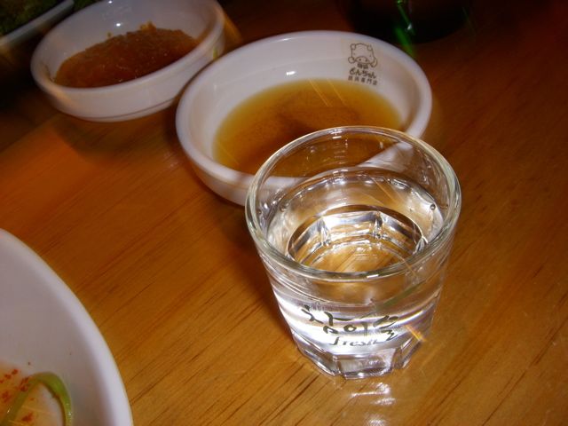 韓国式に割り物もなく、そのままストレートで飲む。