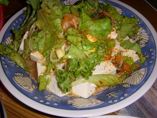 仲間が野菜サラダを注文したが、韓国風で辛口になっていた。