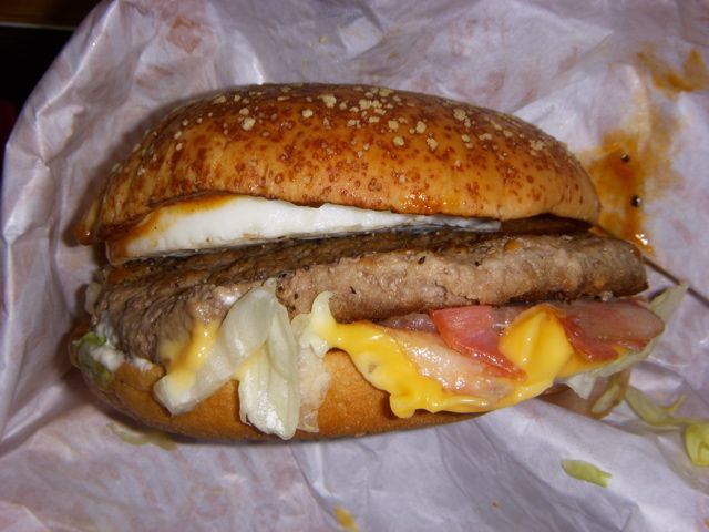 深いコクのある特製グレイビーソース が、ジューシーでボリュームたっぷりの1/4ポンドビーフパティ(通常のビーフパティの約2.5倍)、ぷりぷりのタマゴ、旨みたっぷりのベーコン、チー ズ、レタスを包み込んだ幸せなハーモニー。粉チーズをトッピングした香ばしい特製バンズも見逃せないポイントです。