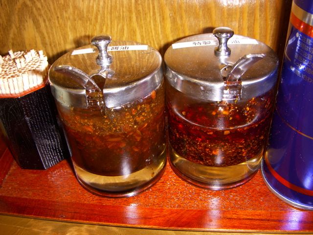 テーブルにはなにやら香味油が…