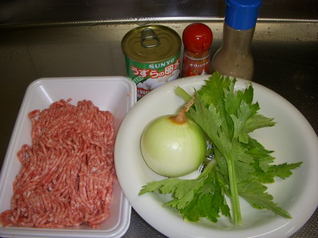 基本的にハンバーグの材料とうずら玉子。