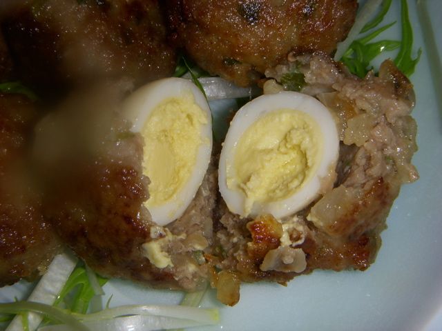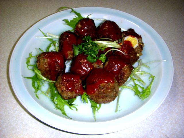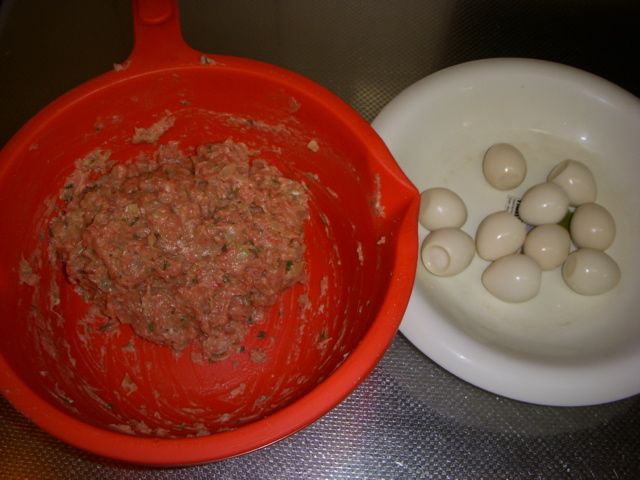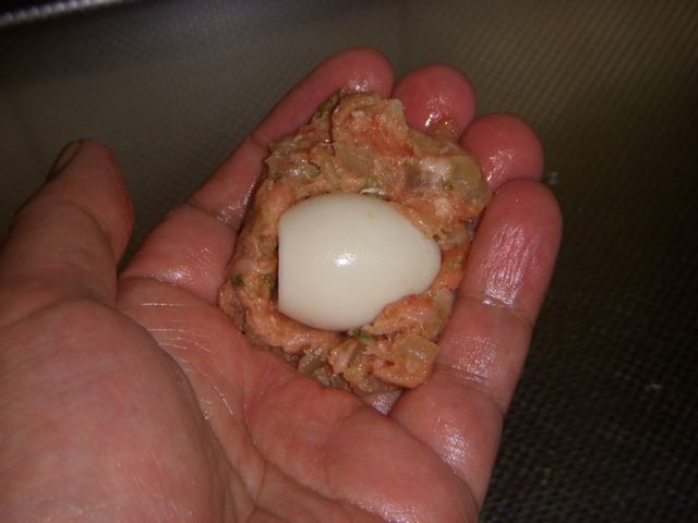 うずら玉子を肉で包むので、薄い部分が水分があると割れてしまう可能性がある。