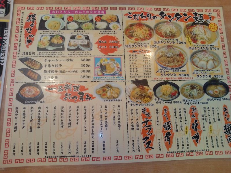 色々なメニューがあるのだが、どれを選んでいいかわからないから、基本の熱烈タンタン麺を注文。